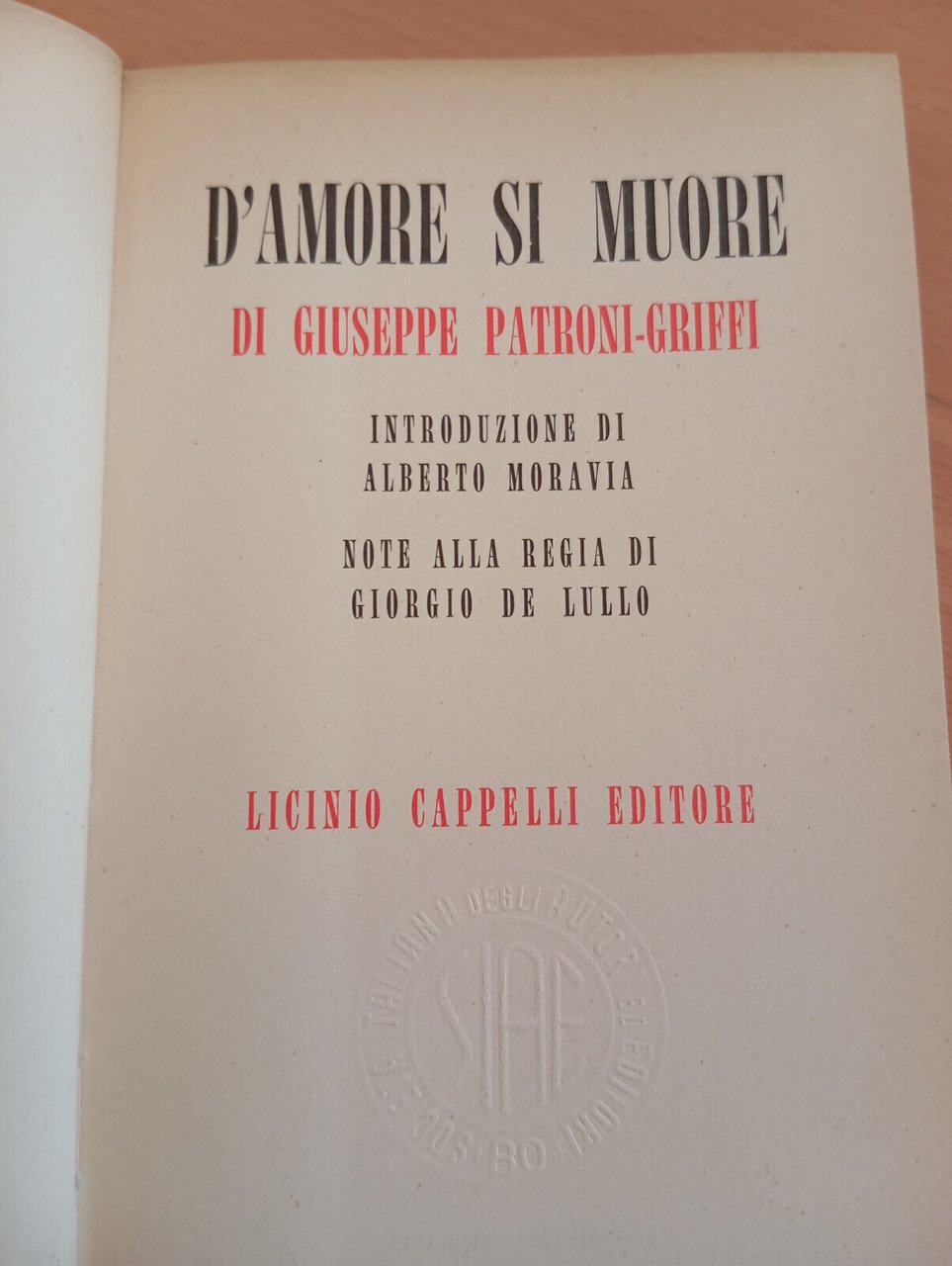 D'amore si muore, Giuseppe Patroni-Griffi, cappelli, 1960 Prefazione A. Moravia