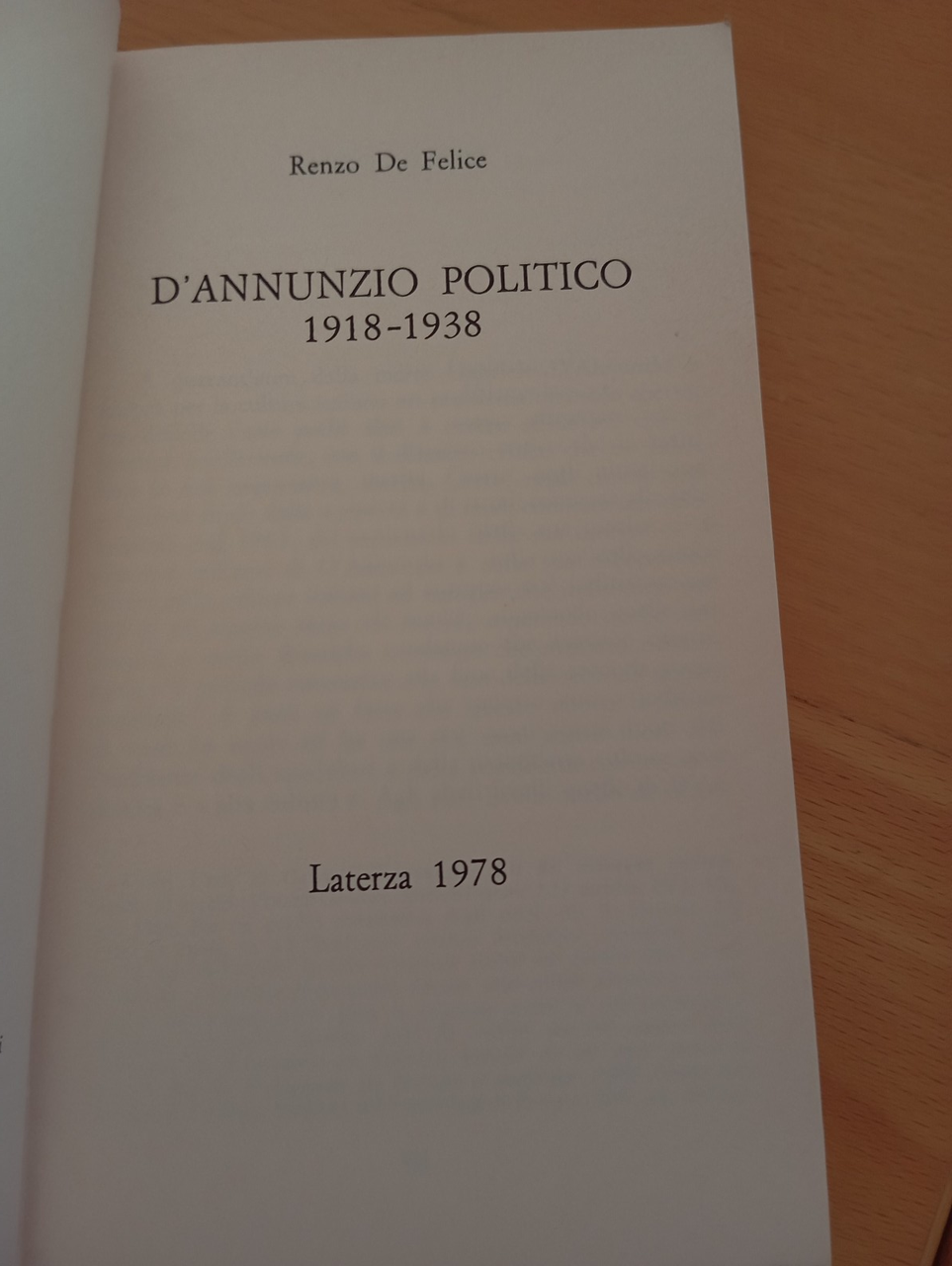 D'Annunzio politico 1918-1938, Renzo De Felice, Laterza, 1978