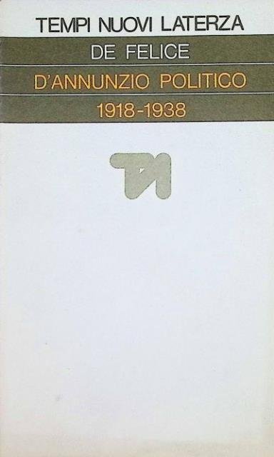 XV, 284 p. ; 18 x 11 cm. Tempi nuovi, 104. Ripercorrendo la storia dell'impresa fiumana, del rapporto di amore-odio tra D'Annunzio e Mussolini, dell'emarginazione alla quale il fascismo ridusse il poeta nella dorata prigione del Vittoriale, De Felice mette a fuoco il ruolo più strettamente politico del «poeta-soldato ». La sua ideologia cominciò a modellare quello che sarà poi il fascismo mussoliniano: la marcia su Fiume prefigura la marcia su Roma, la Carta del Carnaro contiene in nuce il programma di San Sepolcro, i discorsi alle masse preannunciano quelli di piazza Venezia, gli slogan e le divise dei legionari anticipano i modelli degli squadristi-gerarchi fascisti. D'Annunzio, che si affida a un moto popolare istintivo e non organizzato, fallisce. Mussolini, che sa accoppiare per tempo al supporto popolare la connivenza con le gerarchie politiche ed economiche del vecchio Stato liberale, prende il potere. Brossura editoriale, coperta in cartoncino flessibile opaco con il titolo impresso al piatto e al dorso. Codice libreria 9935.