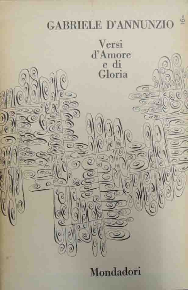 Gabriele D’Annunzio, Primo vere. Cantonovo. Intermezzo. Elegie romane. L’isottèo. La chimera. Poema paradisiaco. Odi navali. Appendici, Arnoldo Mondadori Editore, s.l. (ma stampato a Verona presso le Officine Grafiche dell’Arnoldo Mondadori Editore) 1968, quinta ed., pp. 1154, 1 c. di tav. f.t. ill. b.n. con ritratto dell’autore in antiporta, cm 20, tela ed. con titoli in oro al dorso, taglio superiore spruzzato di blu, sovraccoperta e cofanetto in tela e cart. ed. Collana I classici contemporanei italiani. Tutte le opere di Gabriele D’Annunzio,a cura di Egidio Bianchetti. Versi d’Amore e di Gloria, n. 1. All’occhiello: “Sotto gli auspici della fondazione Il Vittoriale degli italiani”. Leggere tracce d’uso alla sovraccoperta, lievissimi segni del tempo, per il resto perfetto.