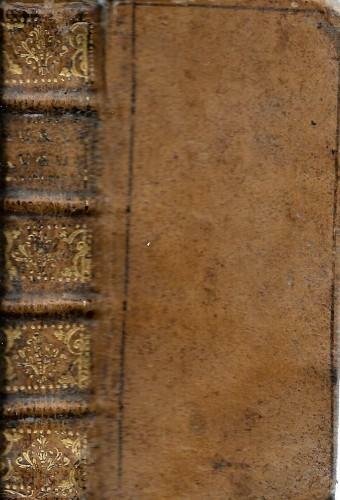 in 12° (cm 6x11), pp. 408, 22 nn. di Index, 1 c.b.; p/pelle coeva, ds. con nervi tit. e fregi in oro, tagli rossi spruzz., front. con incisione che rappresenta il santo con la mitra e un putto con un cuore in mano trafitto da freccia , qc. fregio tip. Vero libro tascabile dell'epoca; manca la cuffia sup., lievi tracce d'uso alla leg. 598/34