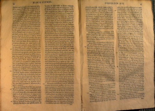 In folio piccolo - pp.24nn, 692 [i.e. 700], 40nn. - Pergamena - Marca n.c. (Lupo: D'esser bianco mi pregio) sul frontespizio, Testatine, finalini e capilettera - Testo su due colonne, frontespizio in rosso e nero. - Volume quasi del tutto staccato dalla legatura, piccole mancanze al frontespizio, piccoli forellini di tarlo. Macchia verde al piatto superiore e macchia scura al piatto inferiore