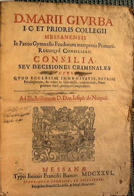 D. Marii Giurba . Consilia, seu decisiones criminales opus quod ecclesiae immunitatis, patriae priuilegiorum, ac totius rei criminalis, tractationem, nunc primum clare, pleneque complectitur
