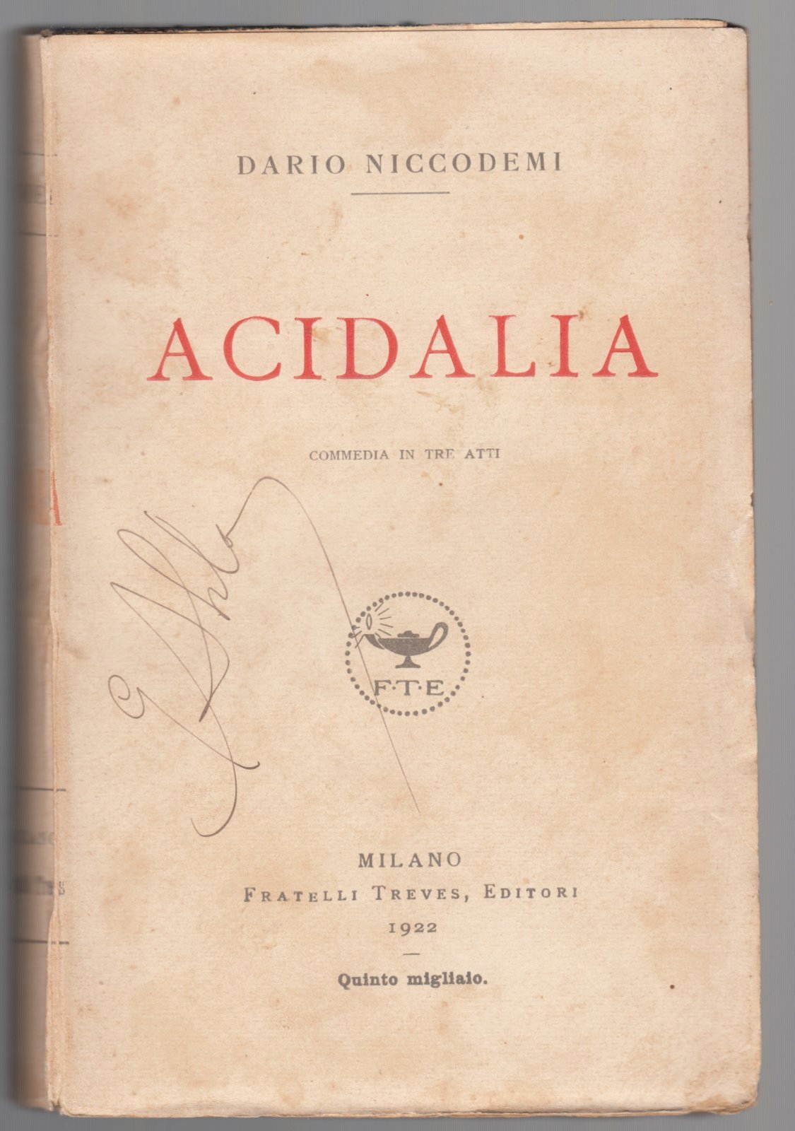 D. Niccodemi Acidalia Treves 1922 Quinto Migliaio Carboneria Abela