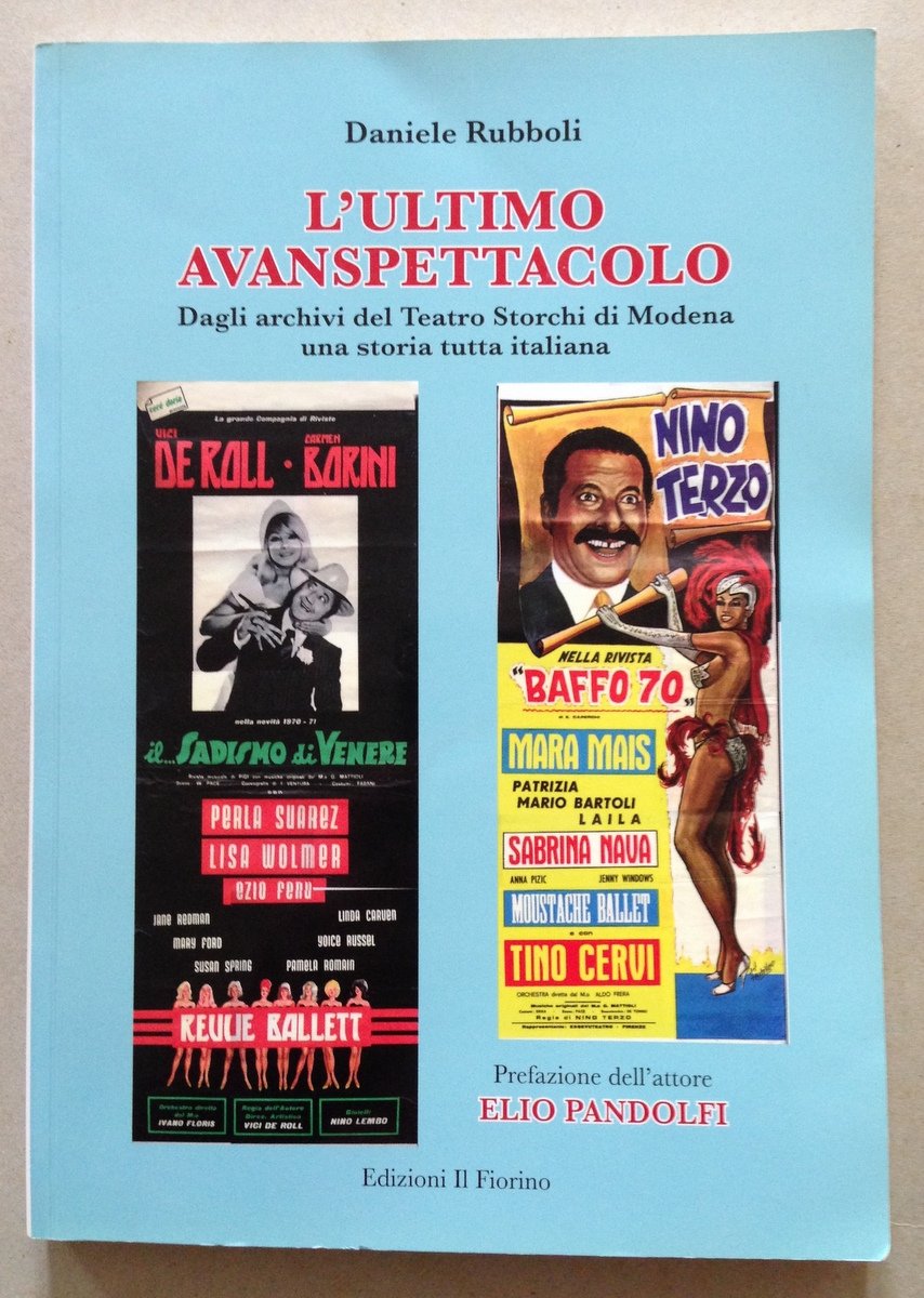 D. Rubboli, L'ultimo avanspettacolo Dagli archivi del Teatro Storchi di Modena una storia tutta italiana Edizioni Il Fiorino, Modena, 2016; cm. 24x17; pp. 207; con moltissime ill. fot. in b/n n.t. e a piena pag.; cartoncino ed. ill. a col. Condizioni di conservazione Volume molto ben conservato. SETT38.L18496 MT