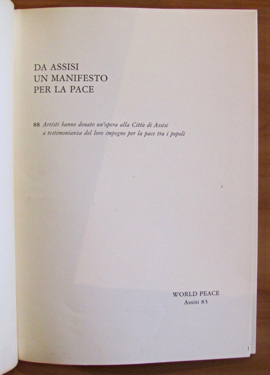 88 Artisti hanno donato un'opera alla città di Assisi a testimonianza del loro impegno per la pace tra i popoli. 88 tavole in b/n e a colori ante-retro. Ed. World Peace - Assisi, 1983. Brossura editoriale. 20,5x29; pp.88. RARO e in OTTIMO STATO , Ottimo (Fine)
