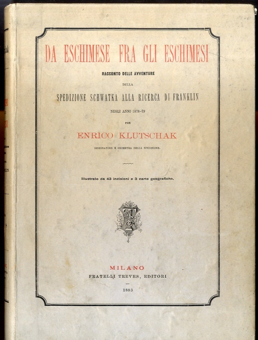 >In-4, pp. XI,230 con numerose illustrazioni nel testo e 3 grandi carte a colori ripiegate. La spedizione fu organizzata nel 1878 alla ricerca di Franklin, disperso da tempo. L'autore fu il geometra e l'illustratore della spedizione e in questo interessante resoconto si sofferma particolarmente sulla vita intima dell'equipaggio, e di come la fauna e gli indigeni siano stati la vera risorsa per poter sopravvivere. Prima ed unica edizione italiana. Volume assai raro. Ottimo stato.