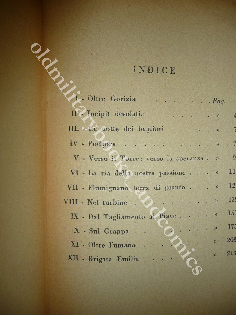Il vol. è un'opera storica pubblicata nel 1934 che tratta della Prima Guerra Mondiale, focalizzandosi sulle battaglie e sugli eventi avvenuti nel fronte italiano tra Gorizia e il Monte Grappa. L'autore narra con dettaglio gli episodi e le fasi militari di questo importante teatro di guerra che coinvolse truppe italiane e austro-ungariche. Il testo, di circa 264 pagine, è considerato un contributo importante alla storia della prima guerra mondiale, in particolare per l'analisi delle battaglie e del contesto militare e umano del periodo.