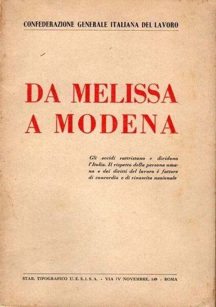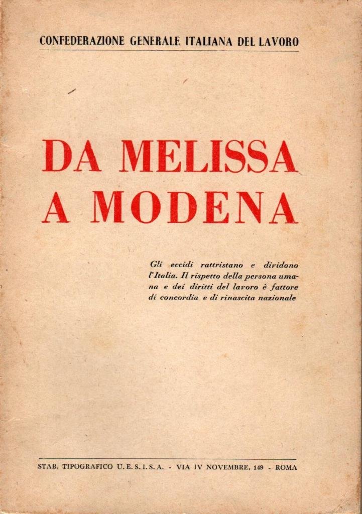 "Da Melissa a Modena", edizione febbraio 1950, pp. 130, formato 13 x 18.