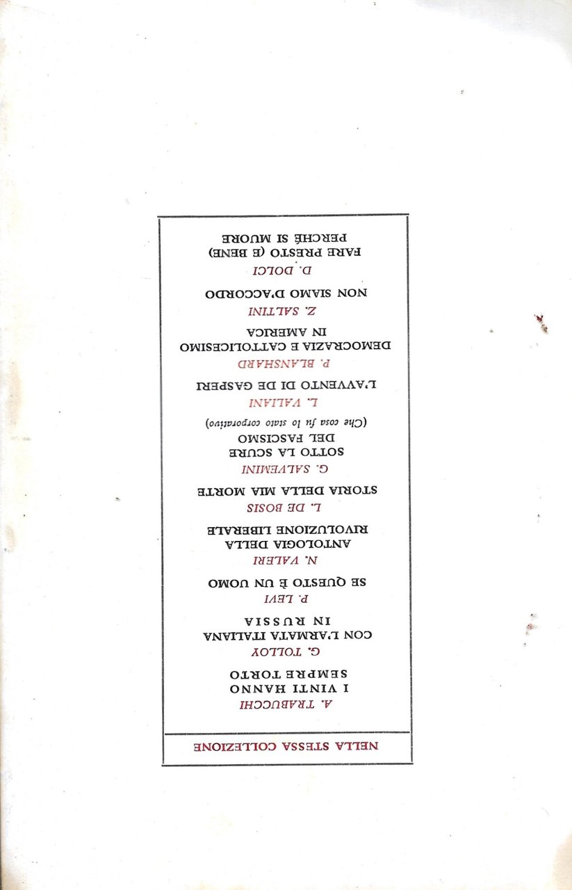 294 Buono (Good) Libro usato proveniente da collezione privata. La copertina riporta tracce d'uso, usura. Mancante di sovraccopertina. Le pagine risultano molto imbrunite dal tempo con lievissime lacerazioni nei bordi. Quinterni finali allentati. Rarissimi segni matita b.