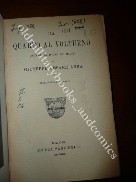 DA QUARTO A VOLTURNO NOTERELLE DI UNO DEI MILLE GIUSEPPE CESARE ABBA XV^ Ed.