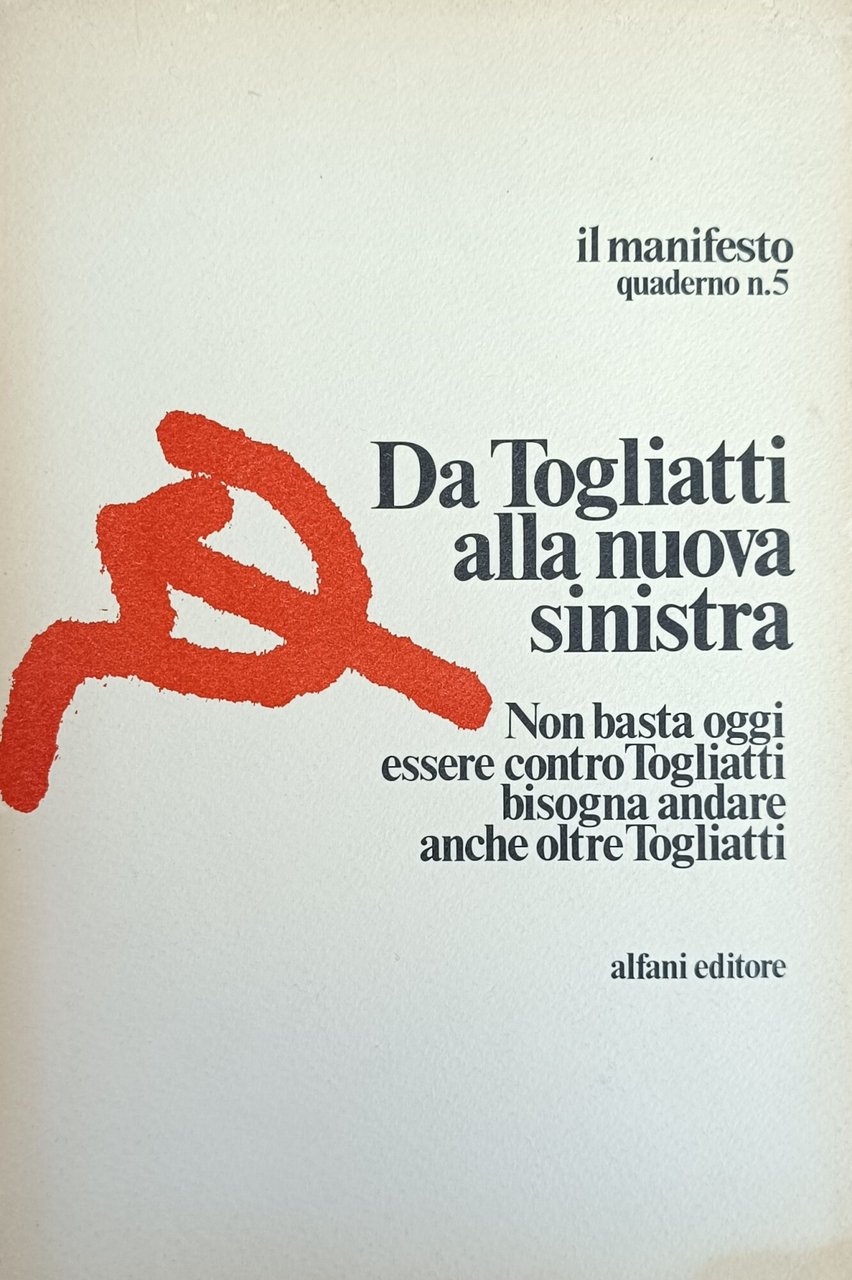 "Non basta oggi essere contro Togliatti bisogna andare anche oltre Togliatti." in ottavo leg. bross. pp. 290 Buono (Good) Buon es. con qualche segno del tempo e timbro di biblioteca estinta all'antiporta.