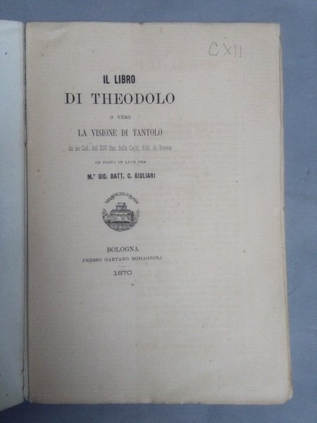 - Libro Di Theodolo (Il) O Vero La Visione Di Tantalo.