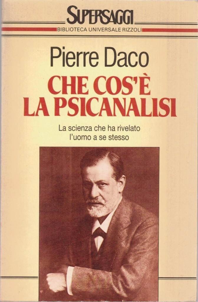 Pierre Daco, Che cos’è la psicanalisi, traduzione di Silvana Gottardi, Biblioteca Universale Rizzoli (RCS Rizzoli Libri S.p.A.), Milano 1992, prima ed. BUR Supersaggi, pp. 394, cm 20, br. ed. Collana SuperBur. Supersaggi, vol. 71. Titolo originale: Les triomphes de la psychanalyse. Leggera brunitura della carta, per il resto perfetto.