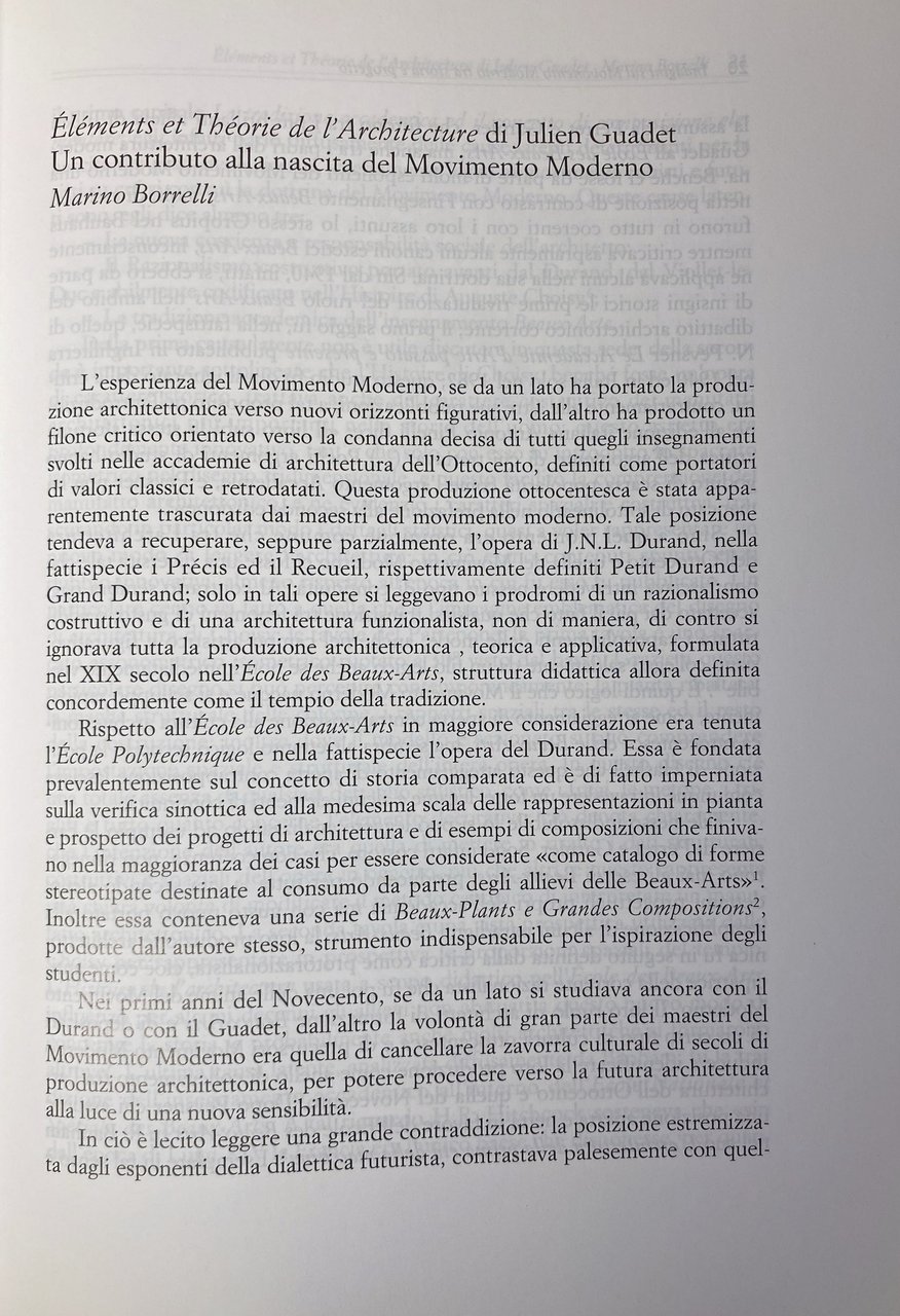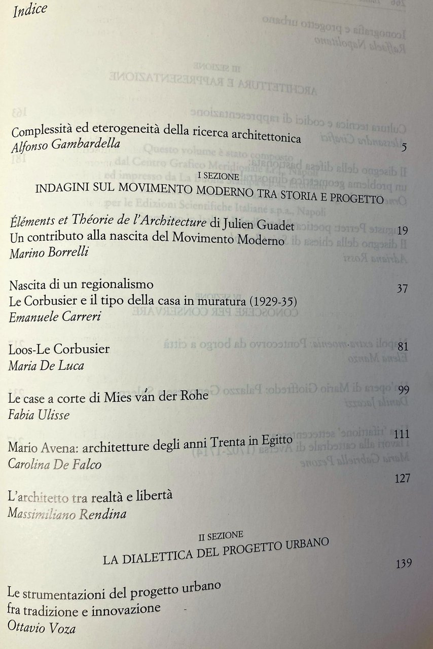 Soggetti: Architettura Saggi Lezioni Complessità Ricerca architettonica Storia Progettazione urbana Movimento Moderno Teorie architettoniche Scienze delle costruzioni Urbanistica Éléments Théorie Julien Guadet Le Corbusier Casa in muratura Loos Corte Mies van der Rohe Mario Avena Anni Trenta Egitto Dialettica Tradizione Innovazione Iconografia Progetto urbano Cultura Tecnica Rappresentazione Disegno architettonico Bastionata Auguste Perret Saint-Joseph Napoli extra moenia Pontecorvo Borghi Città Mario Gioffredo Palazzo Genovese Salerno Rifattione Settecento Lavori Cattedrale Aversa Borgo Restauro Malavasi Libertà Bruno Zevi Zoning Postmodernismo Minimalismo Sanfelice Gaetano Barba Beaux Arts Durand Funzionalismo Futurismo Haskell Garnier Pevsner Banham Bauhaus Germania Auguste Choisy Razionalismo Viollet-le-Duc Henry Russel Hitchcock Corso Allievi Rue Odeon Esprit Nouveau Parigi Sobborghi Periferia Viali Case Abitazioni Cannaregio Rondelet Ponte Menai Boulevard Le Havre Canoni Gravagnuolo Quaroni Benvenuto Baratta Pedro de Toledo Gubler Tentori Reichlin Maison Weekend Brique Pavillon Errazuris Cile Loucheur Précisions Citrohan Domino Homme Monol Villa Savoye Oeuvre complète Paul Poiret André Jaoul Louis Fallet Regionalismo Anni Venti Jardin Giardino Pianta libera Façade libre Jeanneret-Gris Glamour en Série 5 Points Professeur Elementi Teoria Frank Lloyd Wright Walter Gropius Alvar Aalto Francia Case Seriale Immeuble-Villas Weissenhofsiedlung Vers une architecture Residenze private Auteuil Neuilly Boulogne La Celle-Saint-Cloud Garches Poissy Edilizia La Roche-Jeanneret Plan Voisin Estetica Cinque Punti Pilotis Ttetti-giardino Toit terrasse Fenêtre en longueur Finestra a nastro Facciata Modulor Chandigarh Gauthier Jenger Allen Brooks Purismo Libri rari fuori catalogo illustrati Guillaume Apollinaire Ozenfant
