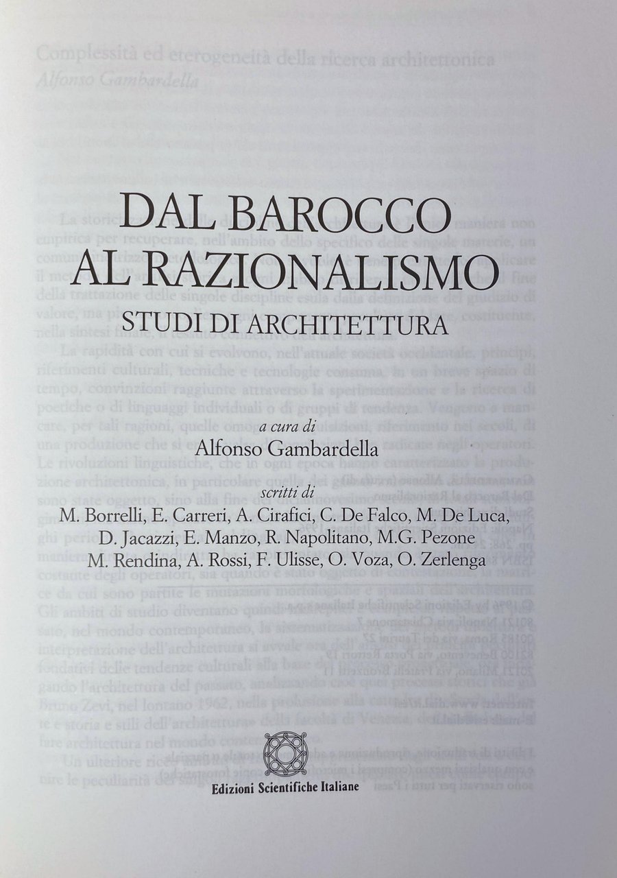 Titolo: Dal barocco al razionalismo: studi di architettura