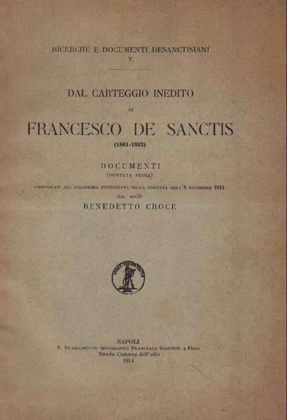 DAL CARTEGGIO INEDITO DI FRANCESCO DE SANCTIS (1861-1883). - Documenti comunicati all'Accademia Pontaniana dal socio Benedetto Croce. Ricerche e documenti desanctisiani. (Puntata Prima - Seconda- Terza - Quarta).
