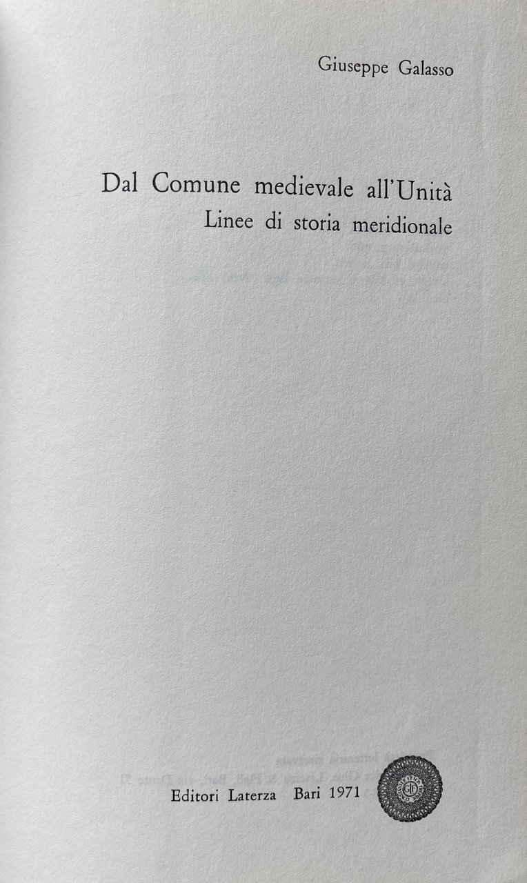 DAL COMUNE MEDIEVALE ALL'UNITÀ. LINEE DI STORIA MERIDIONALE