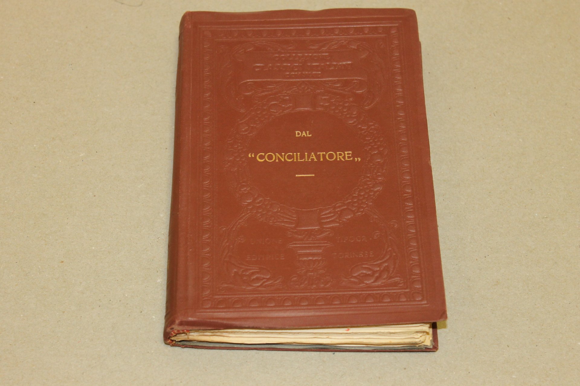 AA. VV. Dal Conciliatore. Torino, Utet 1927 italiano, 18 12,5 pp.326 Pagine da rifilare sul lato destro e in basso. piccolo strappo sulla pagina della prefazione. Segni di usura lungo i margini e sulle cuffie di copertina.