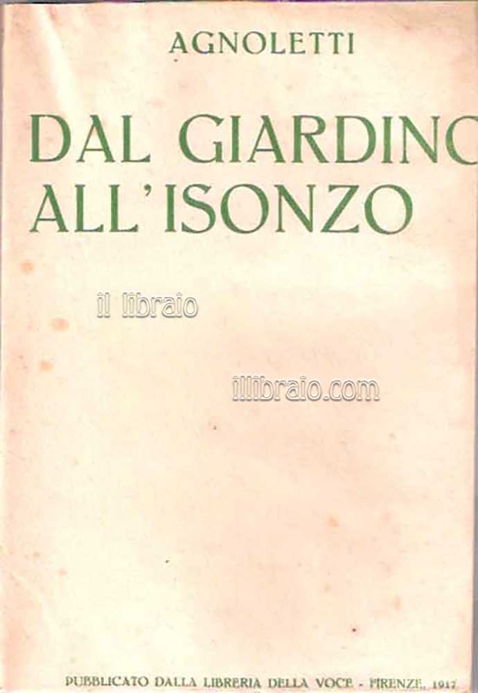 in 16°; pp. 136; br.; 1^ ed. con le censure dell'editore. L'aut.(1875-1933) dopo aver partecipato alla campagna di Grecia, dove vestì la camicia rossa in una Legione garibaldina guidata da Ricciotti Garibaldi, si laureò in lettere alla fine dell'ottocento. In seguito ad una parentesi scozzese (durante la quale insegnò italiano all'univ. Di Glasgow) tornò in Italia nel 1910 e collaborò alle riviste letterarie "Voce" e "Lacerba". Allo scoppio della 1^ g.m. partì come volontario e tornò nel '19 con il grado di tenente. "Il bordone della poesia" e "Dal giardino all'Isonzo" rappresentano il meglio della sua produzione (notizie acquisite da: "Dizionario Letterario Bompiani") (ottimo ma leggermente rifilato)