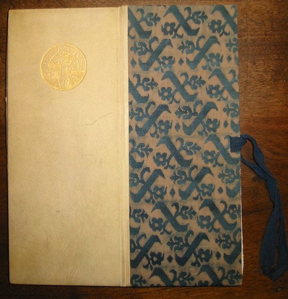 Fogli volanti (cm. 27) in facsimile di autografo numerati da 1 a 37 su carta a mano con barbe con la filigrana ‘Per non dormire’. Cartella in mz. pergamena con l’insegna in oro ‘Memento audere semper’ e tessuto avana ed azzurro con nastri di chiusura. E’ qui pubblicata in 50 esemplari fuori commercio (Vecchioni, 90c) la traduzione in italiano di due capitoli dell’opera ‘Aux bon chevaliers latins de France e d’Italie. Pour lealté mantenir. ‘ I capitoli sono: ‘Guglielmo Oberdan e le due Gesta’ e ‘Lealtà passa tutto. E con vertù fa frutto’.