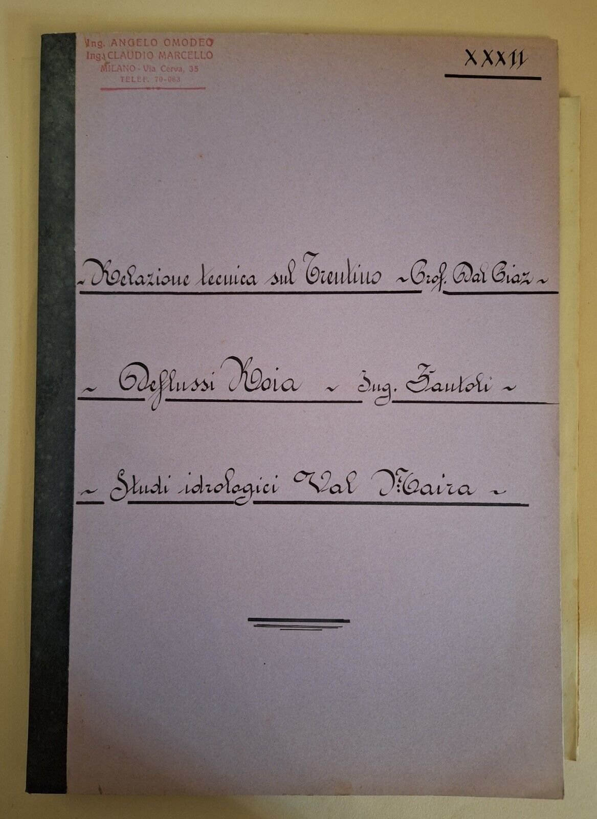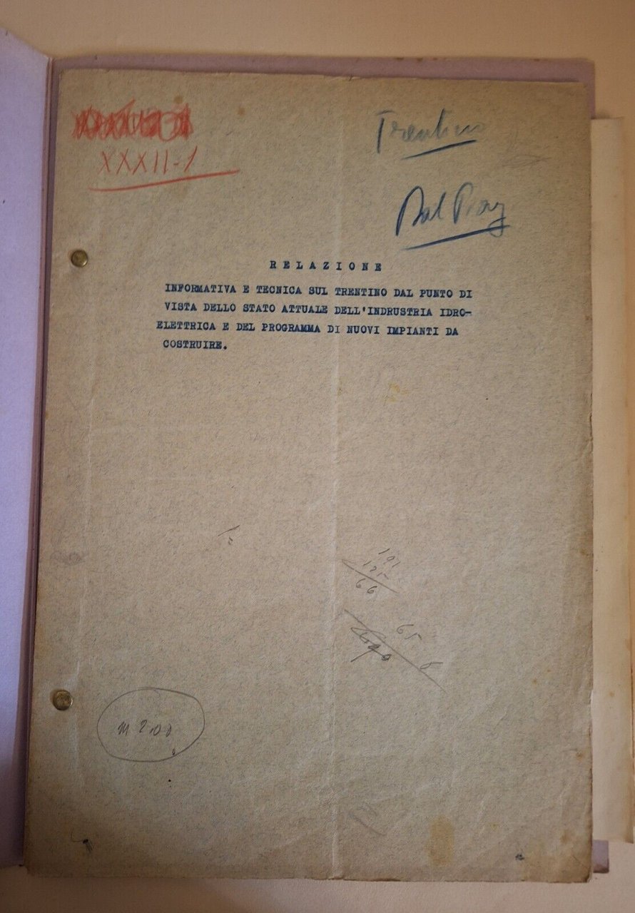 DAL PIAZ RELAZIONE TECNICA SUL TRENTINO DAL PUNTO DI VISTA DELLO STATO ATTUALE DELL'INDUSTRIA IDROELETTRICA E DEL PROGRAMMA DI NUOVI IMPIANTI DA COSTRUIRE.ING. FANTOLI DEFLUDDI ROIAIn 4°, legatura cartacea, pag. 19 + 20 .Lievissimi segni alla copertina, pagine fresche e pulite.