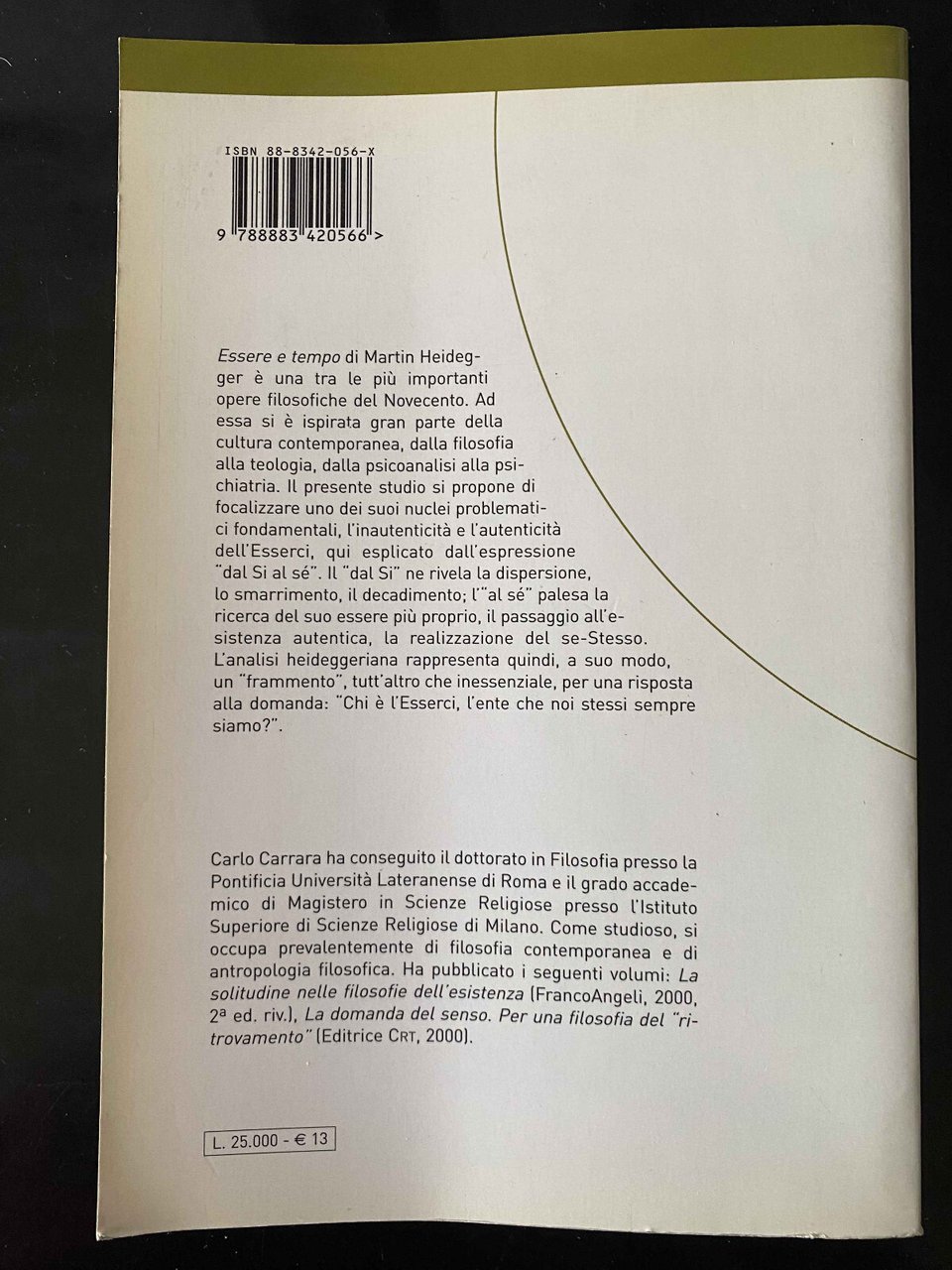 Dal Sì al sé. Heidegger e il richiamo dell'autenticità, Carlo Carrara, 2000 RARO