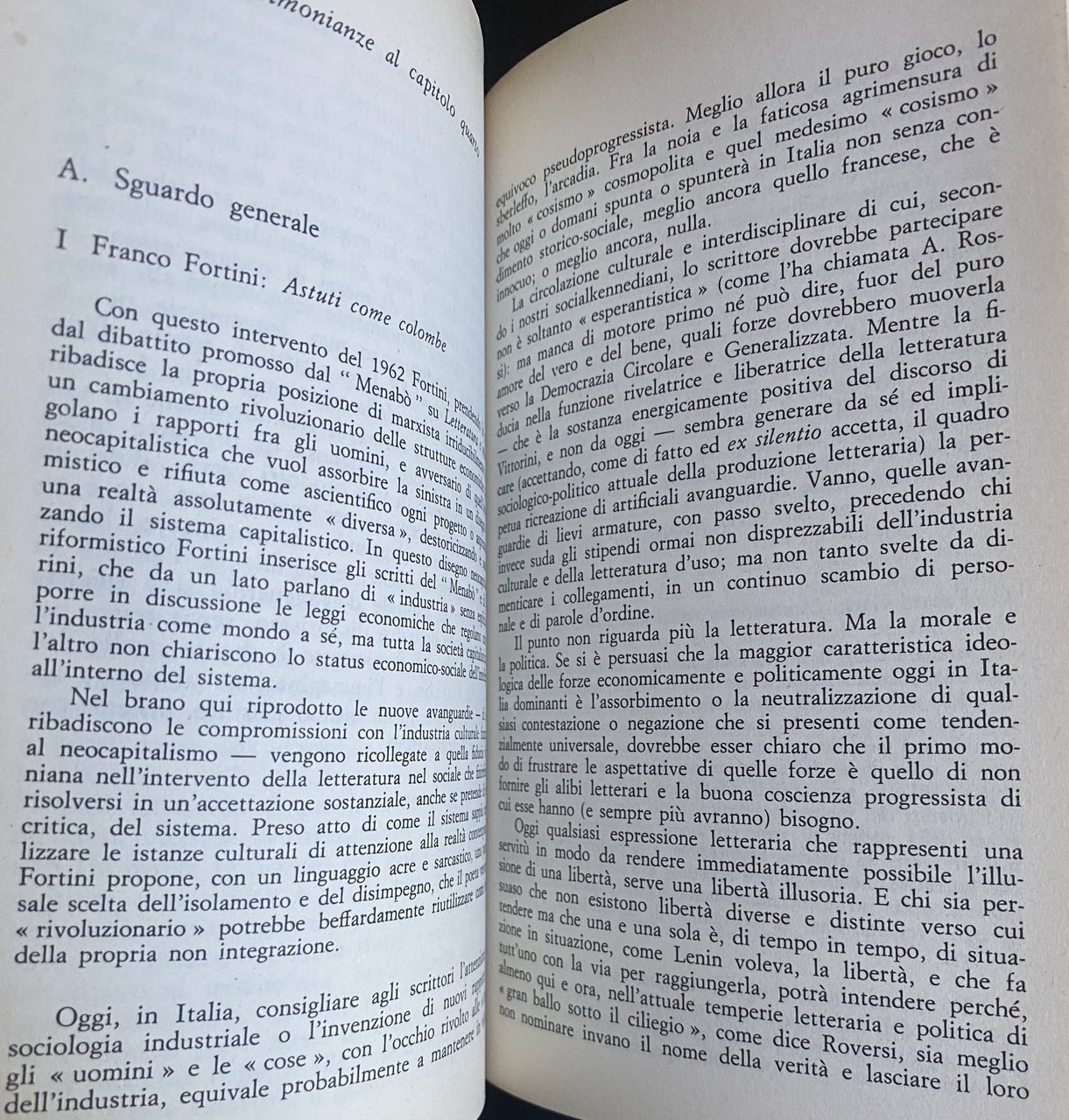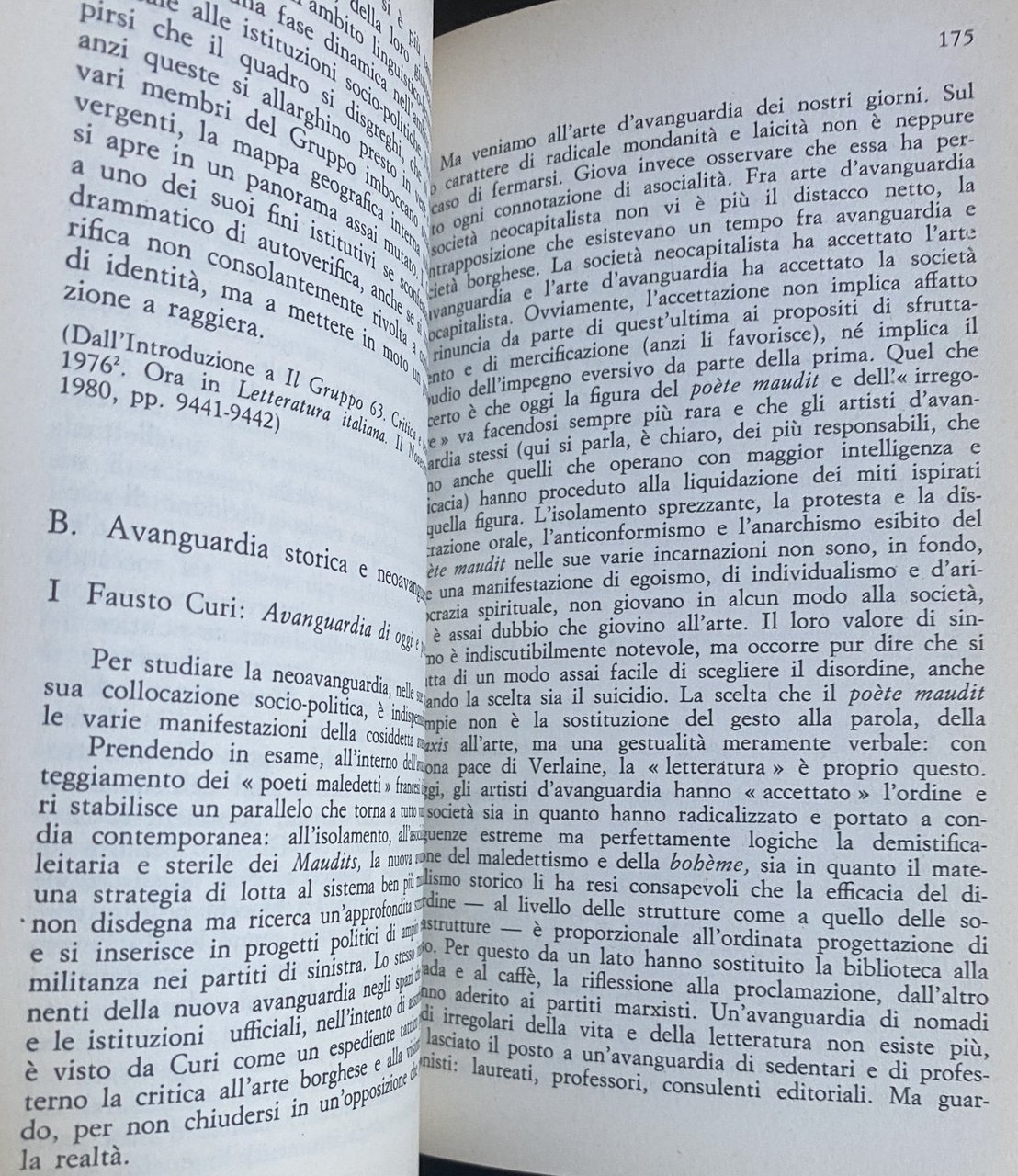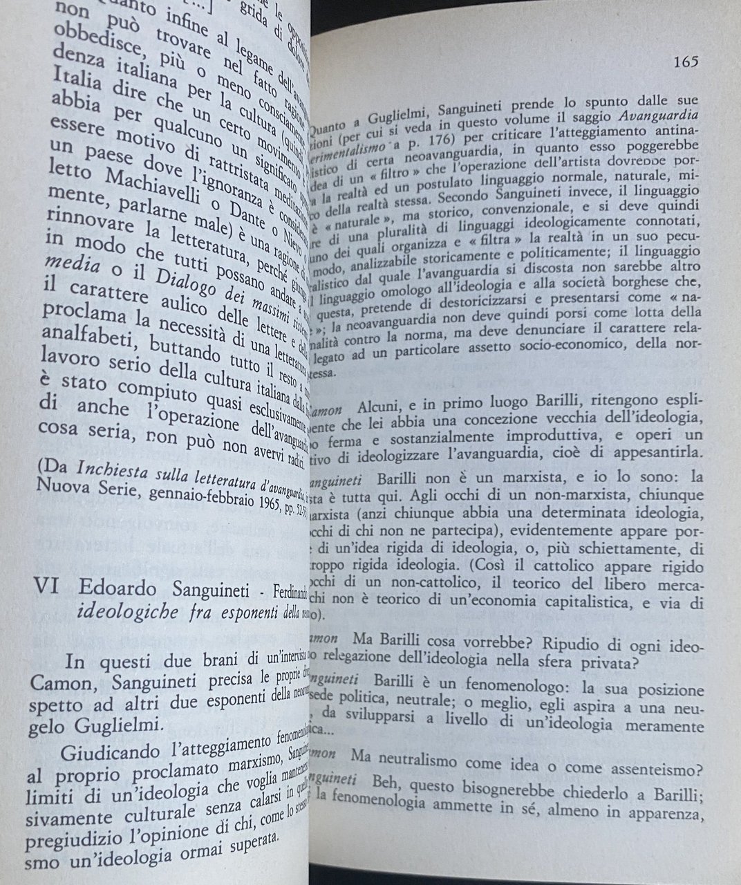 - Critica letteraria, Avanguardia, Letteratura, Letteratura italiana, Dopoguerra, Saggi critici, Arte, Romanzi, Teorie letterarie, Filosofia, Avanguardie artistiche, Avanguardie letterarie, Scrittori, Opere, Sociologia, Narrativa, Libri fuori catalogo, Poetica, Decadentismo, Ermetismo, Estetica, Surrealismo, Anni Sessanta, Anni Settanta, Sessantotto, Controcultura, Comunicazione, Contestazione, Comunismo, Marxismo, Sinistra, Intellettuali, Disimpegno, Impegno, Sperimentalismo