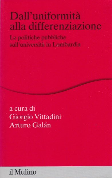 Vittadini Giorgio, Galàn Arturo (a cura di): Dall'uniformità alla differenziazione. Le politiche pubbliche sull'università in Lombardia 2013In-8 (cm 21,4x13,5), pp. 361, brossura edit. con alette. Collana Percorsi Economia. Minimi segni d'uso, molto buono.