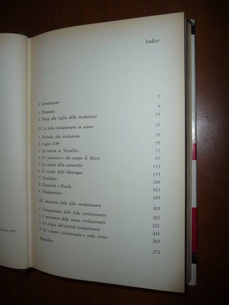 DESCRIZIONE: Ed. Riuniti, Roma, 1966, in 8°, br. verde oliva con tit. oro al dorso e sovracc. ill. b/n, pp. 299 con 1 tav. b/n f.t più volte ripiegata. Quale era la composizione sociale delle masse che nel luglio 1789 presero d'assalto la Bastiglia, che nell'ottobre marciarono fino a Versailles per riportare nella capitale il re e la regina, che nell'agosto del 1789 rovesciarono la monarchia, o che l'8 termidoro assistettero in silenzio alla caduta di Robespierre? Chi le guidava o influenzava? Da quali particolari impulsi erano sollecitate? Quale fu il significato particolare e il risultato del loro intervento? A questi interrogativi risponde quest'opera originale di uno dei maggiori storici contemporanei della Rivoluzione Francese. Indice: Premessa; Parigi alla vigilia della rivoluzione; Preludio alla rivoluzione; Luglio 1789; La marcia su Versailles; Il "massacro" del Campo di Marte; La caduta della monarchia; Il trionfo della Montagna; Termidoro; Germinale e Pratile; Vendemmiaio; Anatomia della folla rivoluzionaria; Composizione delle folle rivoluzionarie; I movimenti delle masse rivoluzionarie; Le origini dell'attività rivoluzionaria; Le "masse rivoluzionarie" nella storia; Appendice. CONDIZIONI: Ottime. Uno strappo con mancanza al bordo della pag. 244 PESO / WEIGHT: 570 gr. without package