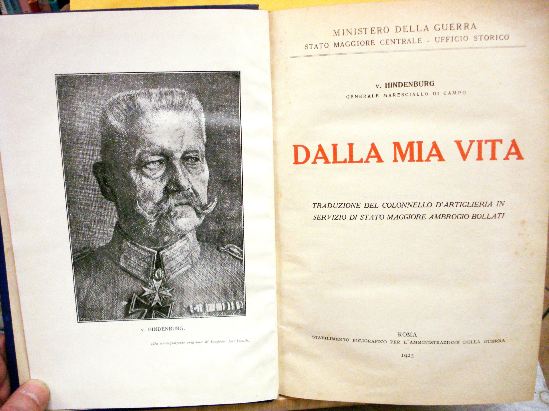 DALLA MIA VITA, TRADUZIONE DEL COLONNELLO D'ARTIGLIERIA IN SERVIZIO DI STATO MAGGIORE AMBROGIO BOLLATI.,