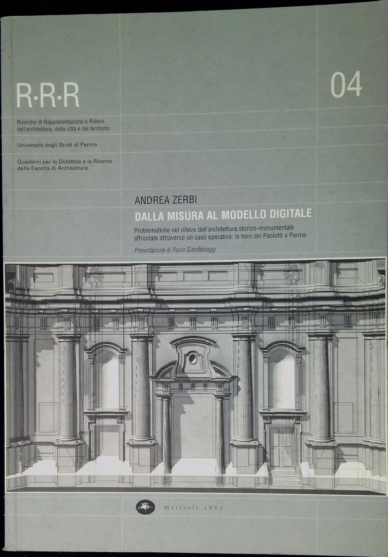 Zerbi, Andrea Dalla misura al modello digitale : problematiche nel rilievo dell'architettura storico-monumentale affrontate attraverso un caso operativo le torri dei Paolotti a Parma. Fidenza, Mattioli 1885 2007, 172 p. : 163 ill. in nero ; 30 cm (41703)