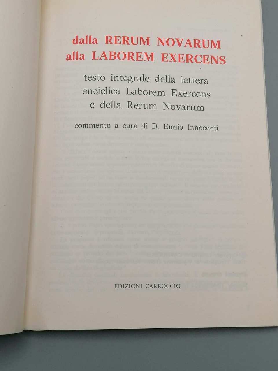 Testo integrale della lettera enciclica L.E. e della R.N.a cura di D. Ennio InnocentiCollana: Documenti pontifici Rarità bibliografica in prima edizione 1981 Buone condizioni generali, nulla da segnalare