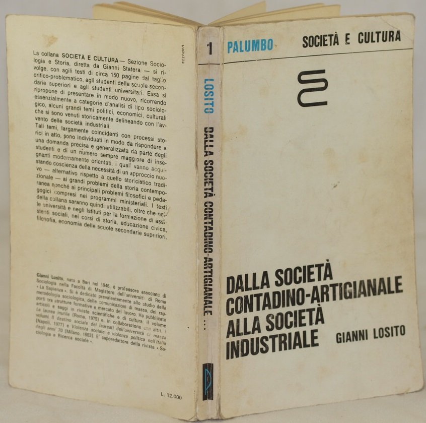 In 8. Dim. 22x13 cm. Pp. 170. Edizione del 1984 di questo volume scritto da Gianni Losito. All'interno: L'avvento della società industriale, La nuova borghesia e il capitalismo, Il proletariato industriale, Produzione dei massa e organizzazione del lavoro, Dalla società industriale alla società post-industriale ecc. Numerose note manoscritte e sottolineature all'interno. In buone condizioni. Copertina editoriale in discrete condizioni generali con usure e parti mancanti ai margini e dorso. Legatura in buone condizioni. All'interno le pagine si presentano in buone condizioni con rare fioriture. Edition of 1984 of this volume written by Gianni Losito. Inside: Industrial society, New middle class and capitalism, Industrial worker class, Mass production and organization of work, From industrial society until post industrial society etc. Different manuscripted notes and pen underlinings inside. In good conditions. Editorial cover in fair general conditions with wearings and missing parts in the edges and spine. Binding in good conditions. Inside pages are in good conditions with occasional foxings.