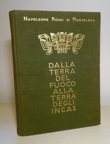 Paravia, 1930; rara prima edizione; legatura in piena tela verde con titolo e fregio in oro al piatto e al dorso; in 8°, pp. 324. Con 4 carte geografiche a colori ripiegate (America del Sud, Bolivia, Cile meridionale, Carta planimetrica della ferrovia transandina), 330 fotografie + altre virate seppia, non numerate fuori testo. ATTENZIONE: il volume presenta una ventina di pagine con segni di abrasione (a volte nel testo a volte alle immagini) dovuti al distacco delle pagine che erano "appiccicate" a causa di conservazione in luogo umido. (vedi foto). Stampato su carta patinata. Legatura salda. In queste condizioni 150.00