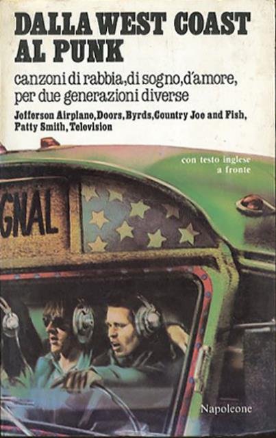 139 p. ; 19 x 12 cm. L'assalto al cielo, 3. Un'ampia raccolta di canzoni, con testo originale in inglese a fronte, tra le più significative degli anni sessanta e settante del Novecento. West Coast e Punk sono messi qui a confronto attraverso la pubblicazione di testi di un folto numero di autori: Jefferson Airplane, Doors, Byrds, Country Joe and Fish, Steppenwolf e Buffalo Springfield per la generazione della West Coast: Patti Smith e I Television per i Punk. Brossura editoriale, coperta illustrata a colori in cartoncino flessibile plastificato lucido. Codice libreria 7343.