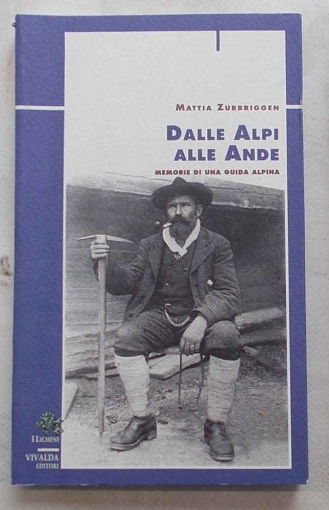 In 8° (cm. 20 x 12,5); pagg. 156, (4); con 12 tavv. f.t.; leggera carton. originale figur. VG. ** n 8° (cm. 20 x 12,5); pagg. 155; con 12 tavole fotografiche f.t.; leggera carton. originale figur. a colori. VG. ** Collana "I Licheni", 53. Prima edizione italiana, tradotta dall'inglese, di un libro che era stato scritto in italiano! La guida svizzera Zurbriggen aveva scritto quest'opera in italiano (la sua lingua abituale, poichè viveva a Macugnanga) e la aveva affidata all'editore inglese Fisher Unwin, che era anche alpinista e suo cliente. Nel 1899 il libro, tradotto in inglese, fu pubblicato a Londra. Ma non ci fu mai un'edizione italiana, fino a questa de "I Licheni", realizzata traducendo in italiano quella di Londra, poichè il manoscritto originale era ormai scomparso!