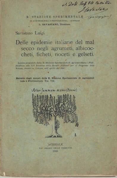 Dalle epidemie italiane del mal secco negli agrumeti, albicoccheti, ficheti, noceti e gelseti. Savastano Luigi.