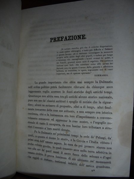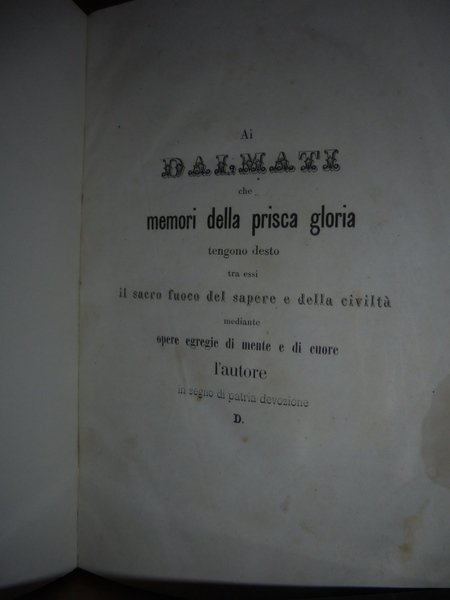 (Dalmazia) Gliubich. Vienna, Primavera del 1856 (da prefazione). Biografia Dalmata. In-8°, tela (legatura nuova), titolo in oro entro tassello al dorso. VIII, 325 pp. Rara prima edizione. Uff. A - I - 1