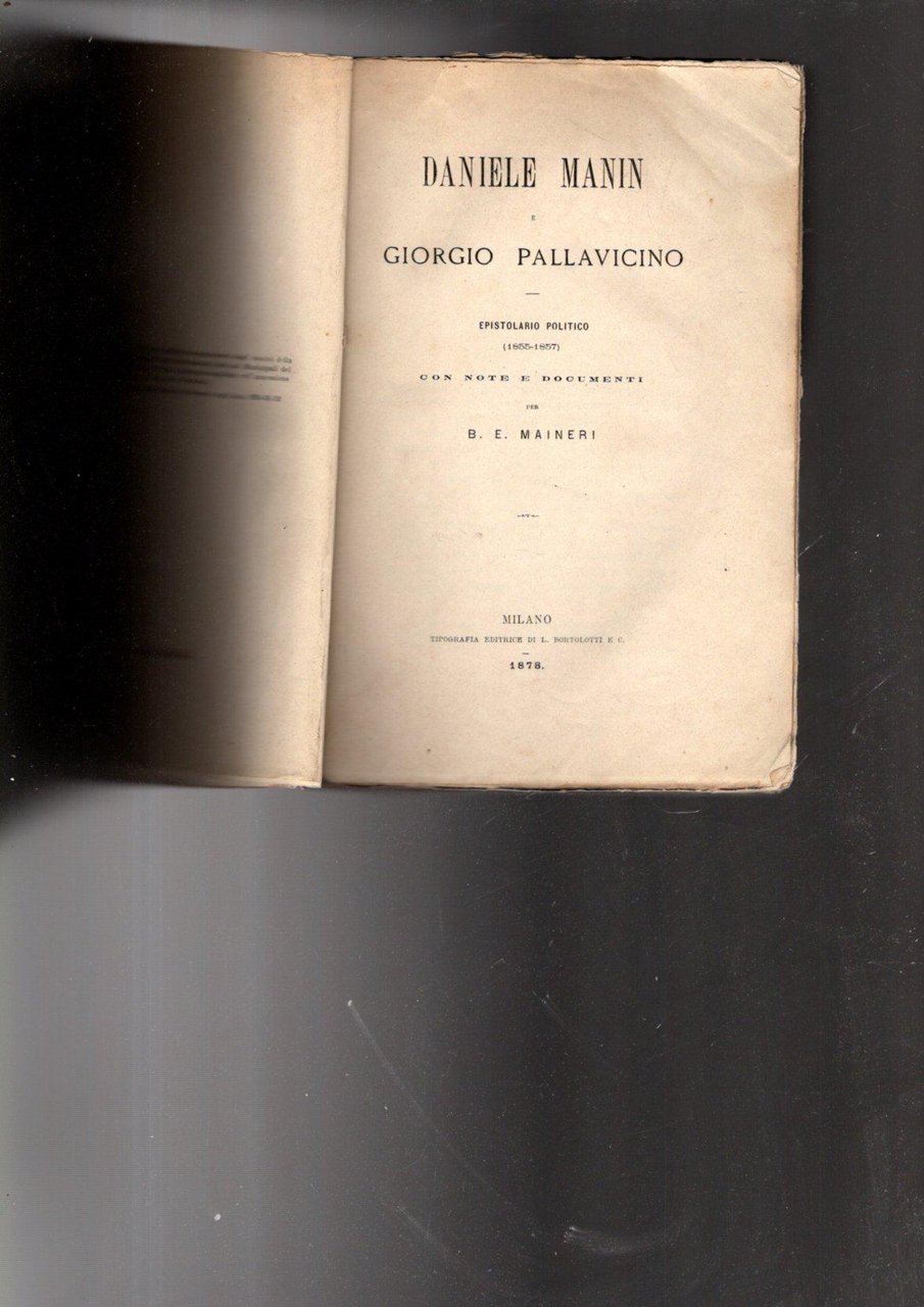 DANIELE MANIN E GIORGIO PALLAVICINO EPISTOLARIO POLITICO 1835-1857 CON NOTE E DOCUMENTI PER B. E. MAINERI ** BORTOLOTTI 1878. PP. 648. IN BROSSURA EDITORIALE CON RILEGATURA NON EDITORIALE. BUONISSIME CONDIZIONI