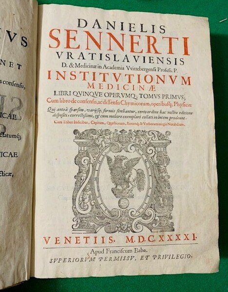 Danielis Sennerti, Vratislaviensis D. & Medicnae in Academia . Institutionum medicinae libri quinque operumque; tomus primus; cum libro de consensu, ac dissensu chymicorum, operibusque; physicis: qui antea sparsim, . Cum tribus indicibus, capitum