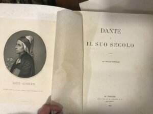 BELLA LEGATURA IN MEZZA PELLE MODERNA. UN RITRATTO DI DANTE INCISA ALL'ACQUAFORTE, 1 TAVOLA CON FOTO DI DIPINTO ALLEGORICO, 1 TAVOLA GENEALOGICA RIPIEGATA. PREFAZIONE DI G.GHIVIZZANI. SCRITTI DI VARI AUTORI TRA CUI CANTU', TOMMASEO, CAPPONI E MOLTI ALTRI. EDIZIONE STAMPATA IN 1500 ESEMPLARI. TRACCE DI VECCHIO NASTRO ADESIVO AI MARGINI DELLE ULTIME 2 PAGINE, PER IL RESTO OTTIMO ESEMPLARE PAGG. XVI, X,956In-4° M.PELLE(MODERNA) CON TIT. ORO AL DORSO MIS. 305X215