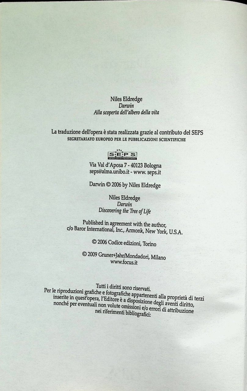Darwin Alla Scoperta dell'Albero della Vita Libro Eldredge Gruner Jahr 2009