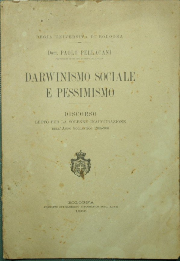 Discorso letto per la solenne inaugurazione dell'anno scolastico 1905-906 - in 8° - pp.52 - Brossura editoriale - Mancanza al dorso - Regia Università di Bologna