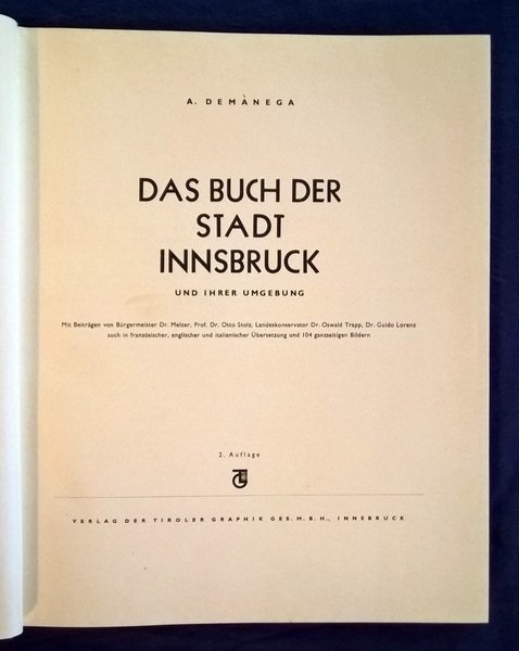 Das buch der stadt Innsbruck. Und ihrer umgebund. [….] 2. Auflage.