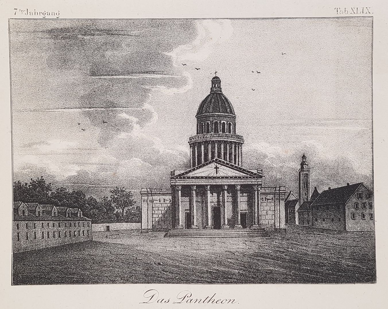 Bella veduta animata del Pantheon di Parigi del 1840 circa. Data: 1840 circa Tecnica: Litografia Dimensione del foglio: 20x24,5 cm Dimensione dell'incisione: 14x19 cm Condizioni: Buone. Rare fioriture Beautiful animated view of Pantheon in Paris of 1840 circa. Date: 1840 circa Technique: Lithography Leaf Dimension: 20x24,5 cm Engraving Dimension: 14x19 cm Conditions: Good conditions. Some foxings