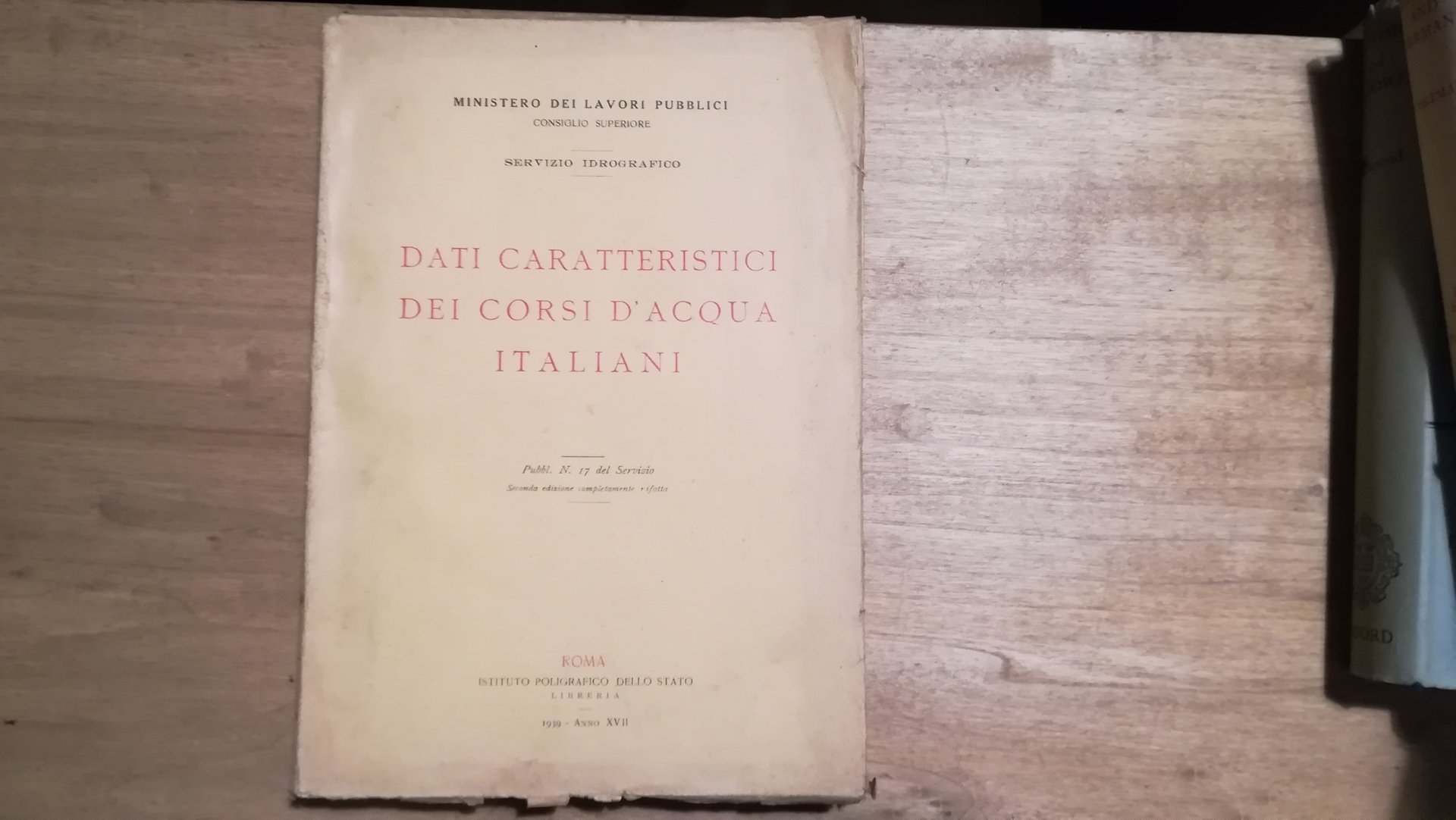 Dati caratteristici dei corsi d'acqua italiani Istituto Poligrafico dello Stato - Seconda edizione 1939 Libro in buone condizioni, dorso rigato, piccole mancanze margini e retro copertina, pagine leggermente brunite. Non esitate a contattarci per altre foto o richieste. Saremo lieti di soddisfare ogni vostra esigenza.