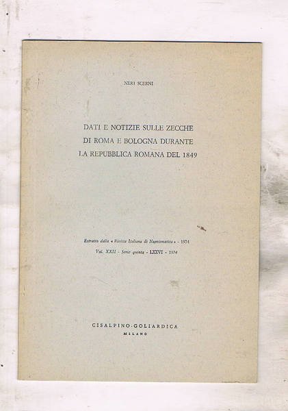Dati e notizie sulle zecche di Roma e Bologna durante la Repubblica Romana del 1849. Estratto.