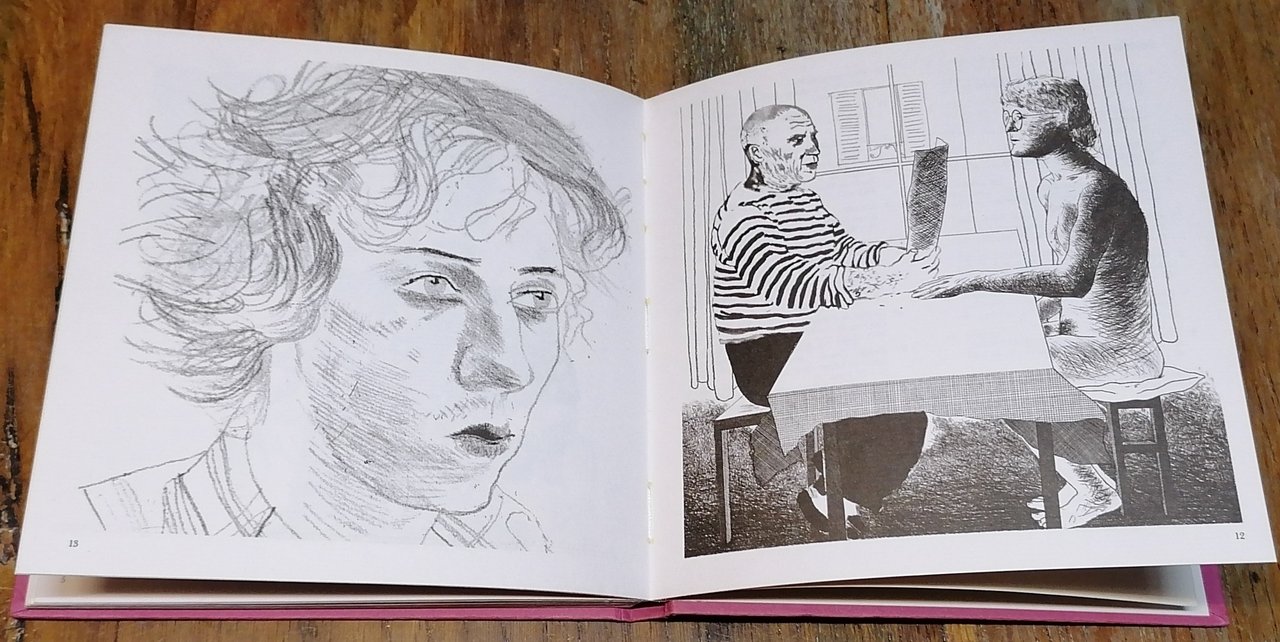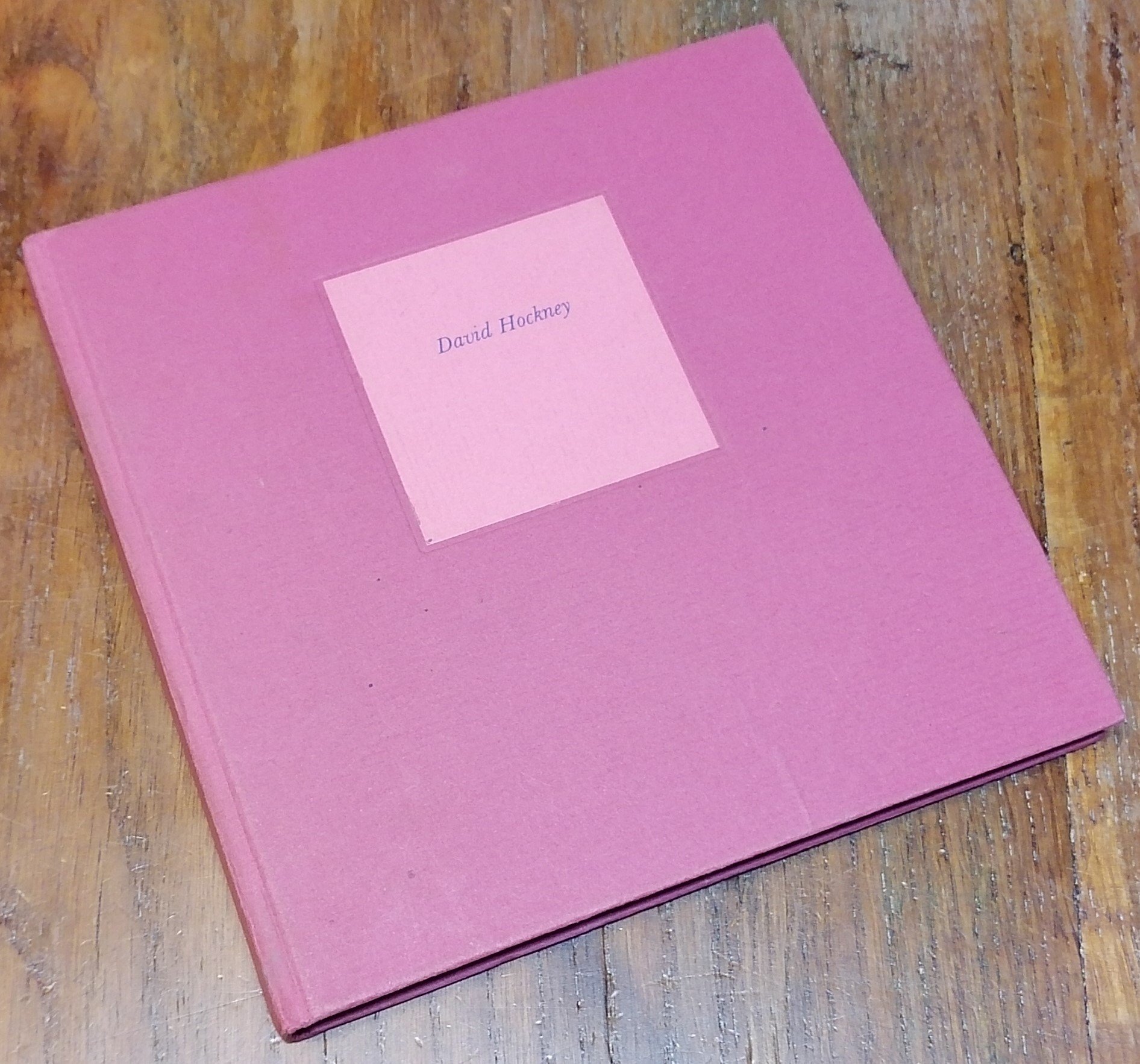 Cm 16,5 x 16,5, legatura editoriale in pieno cartone color corallo rosa, pp. 16 non numerate, con 44 riproduzioni di disegni ed incisioni di David Hockney in nero ed a colori su carta vergata pesante fuori testo. Presentazione di Marc Fumaroli. Pubblicazione edita in occasione della mostra di David Hockney tenuta nell'aprile 1975 presso la Galerie Claude Bernard di Parigi, stampatore Imprimerie Dermont. Ottimo stato di conservazione.