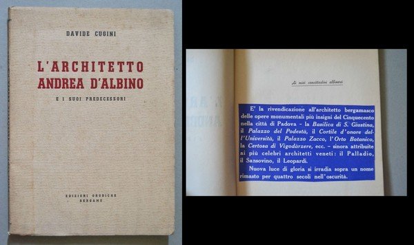 *Davide Cugini. L'Architetto Andrea d'Albino e i suoi predecessori. 1941